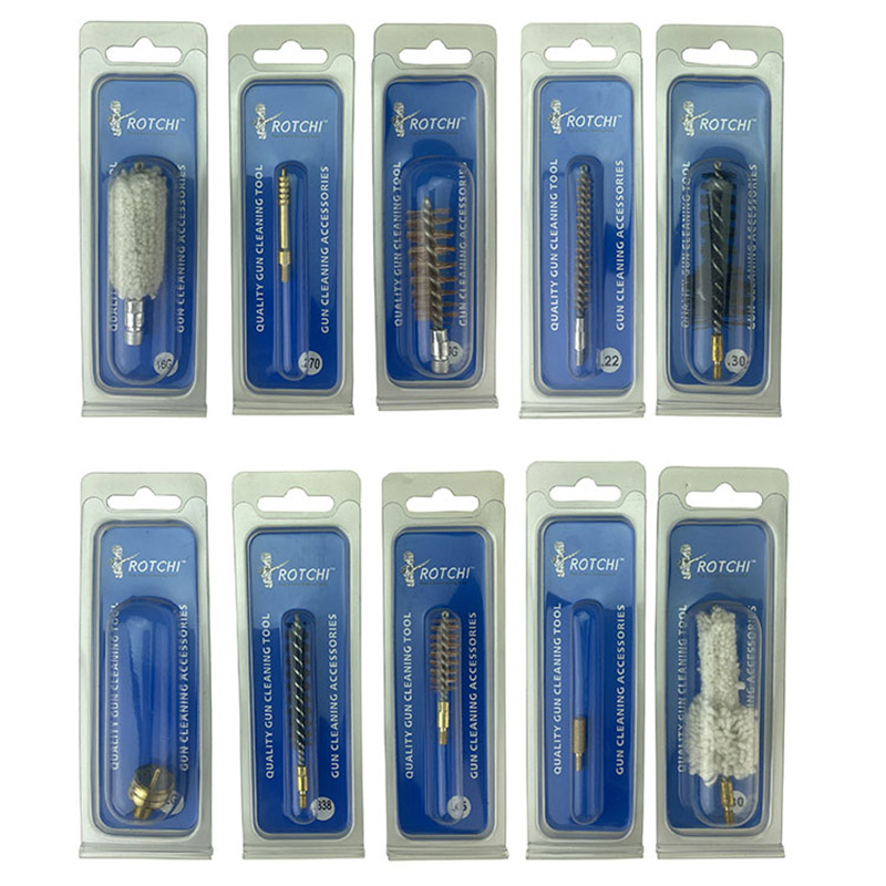 Krtača za čiščenje pištole iz medeninastih žic za čiščenje izvrtine. Rotchi ponuja vse kalibre od .177/4,5 mm do 12Gauge. Imejte tudi drugačno embalažo za vašo pametno izbiro, kot je preklopni/dvojni pretisni omot, v razsutem stanju, 3 kosi v enem paketu, 10 kosov v paketu.