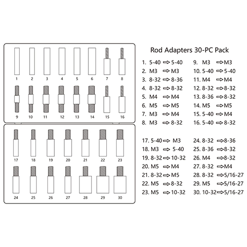 Adapterji za pritrditev palice za čiščenje pištole 30 kosov pakiranja 5-40 8-32 10-32 5/16-27 M3 M4 M5 navoji v moškem in ženskem konektorju palice