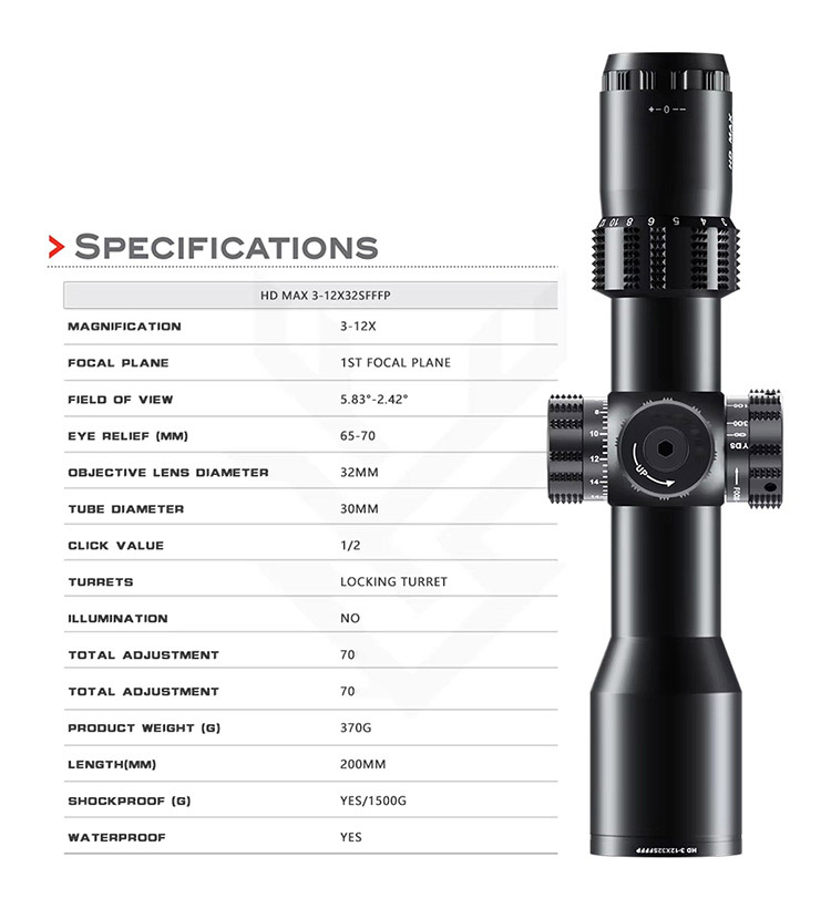 MAX 3-12X32SF FFP HD lovski monokularni teleskop z visoko lečo na debelo