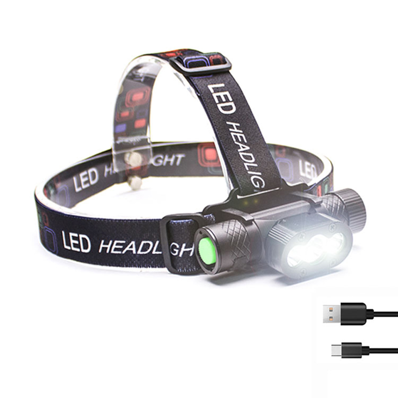 Večnamenska naglavna svetilka s senzorjem za polnjenje USB v 10 načinih