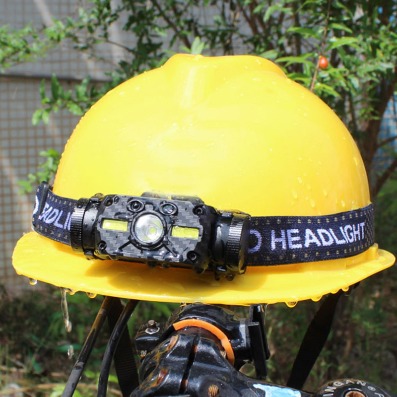 Vodoodporna USB polnilna zunanja zasilna naglavna svetilka za kampiranje Dvojna LED polnilna žaromet z več funkcijami senzorja gibanja