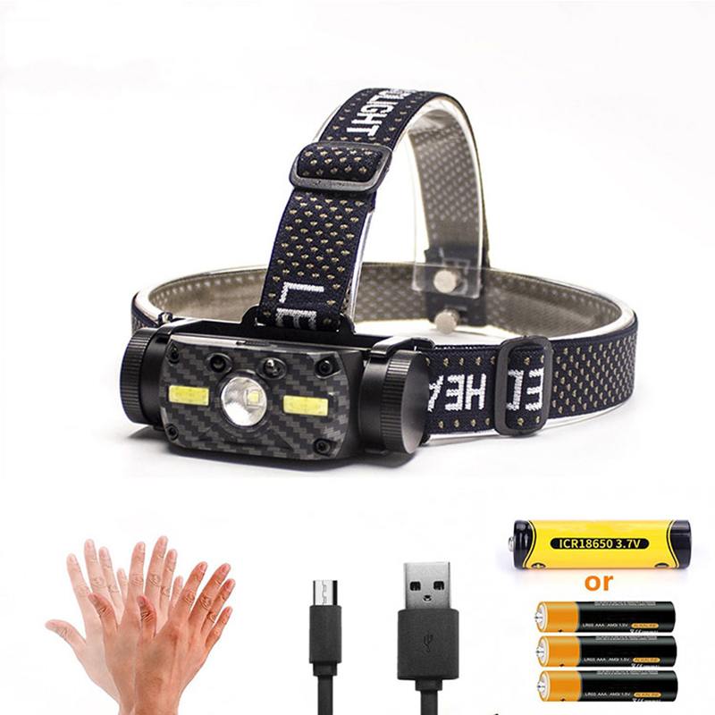 Večnamenska naglavna svetilka s senzorjem za polnjenje USB v 10 načinih Super svetla svetilka USB polnilna LED naglavna svetilka