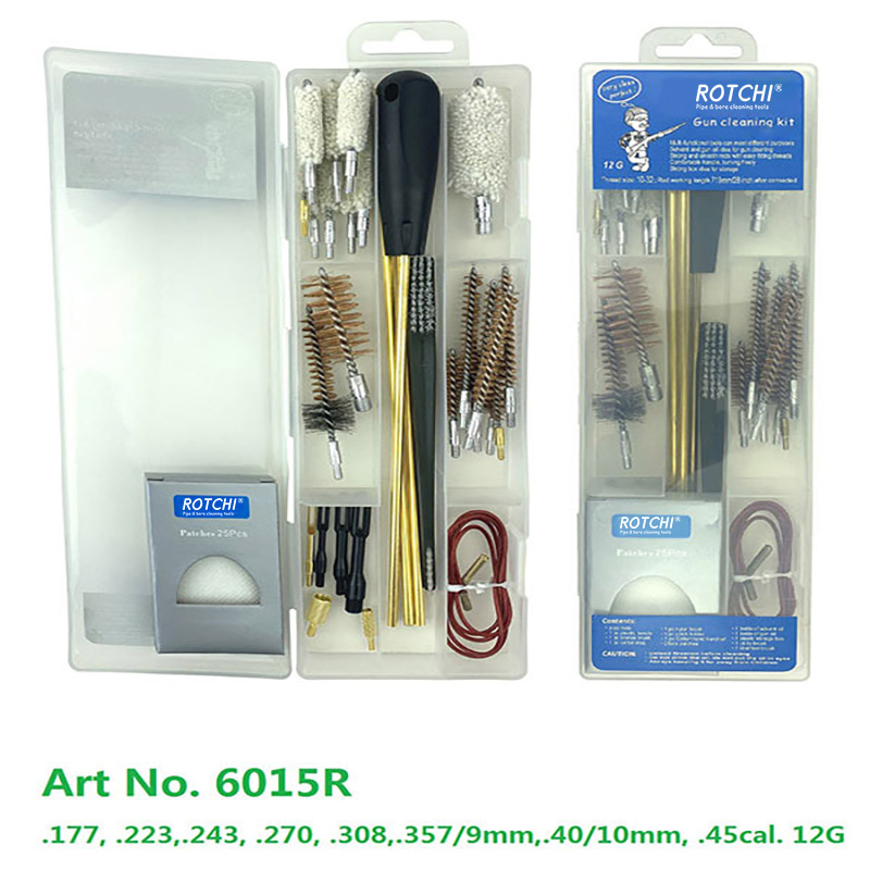 | 6015R | 9-v-1, devet kalibri v enem kompletu, | Univerzalno za puške | .177/4.5 .223/5.56 .243/6.5 .270/7 .308/7.62 .357/.38/9 mm .40/410, .44/.45 12G | 24 kosov |